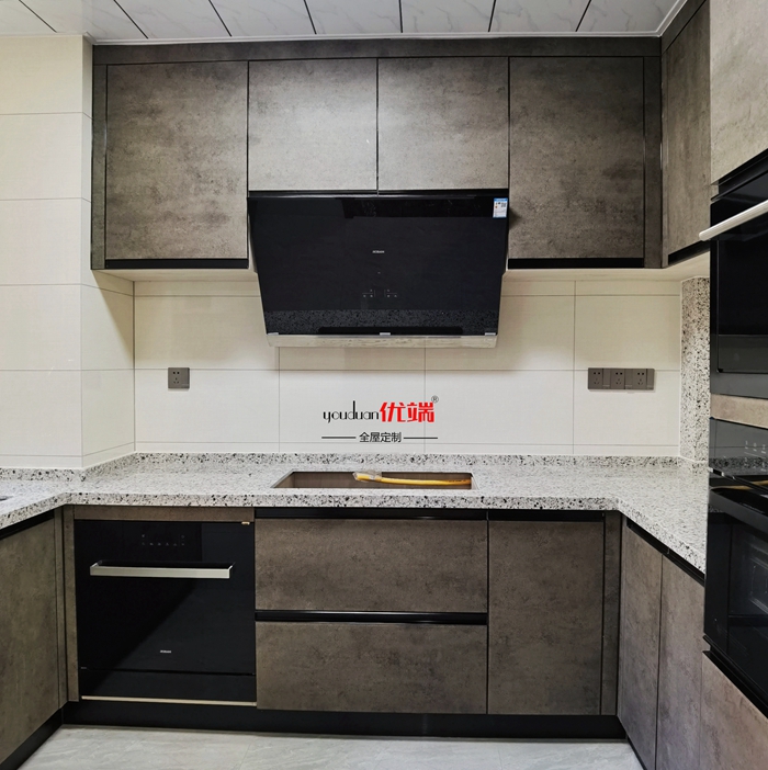 整體房間運(yùn)用新中式實(shí)木包覆門夏特胡桃色進(jìn)行搭配,結(jié)合背景墻山水畫營造寫意感,意境深遠(yuǎn)。 廚房運(yùn)用磨晶板,色調(diào)厚重而又明亮。 新中式風(fēng)感受浩瀚無垠的傳統(tǒng)文化。
