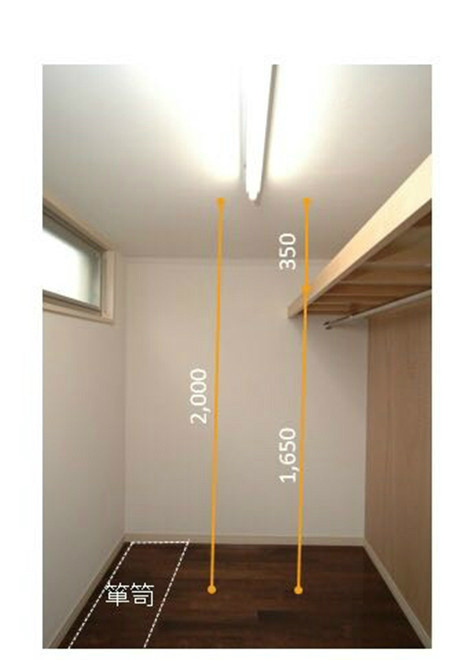 同樣的空間,也可采用一邊掛衣物一邊設(shè)置多屜柜(圖中簞笥的部分)的分類方式。