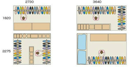 現(xiàn)在的戶型設(shè)計里融入衣帽間的設(shè)計并不罕見。但是,具體衣帽間怎么布置,小二今天介紹一些日本住宅設(shè)計中常用衣帽間的設(shè)計方式,希望能夠?qū)Υ蠹业募已b布置和同行設(shè)計者們的設(shè)計多少有些幫助。衣帽間的尺寸不同,布置方式和收納能力也各不相同。在這里首先按照尺寸分類介紹吧。