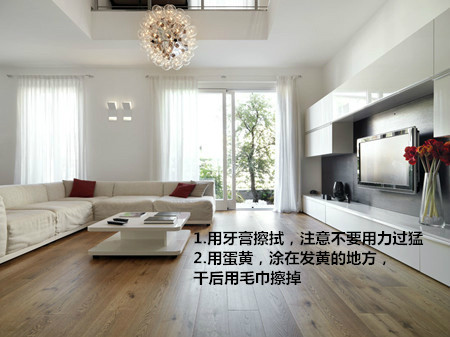 1、問題:白色家具變黃處理方法:家具表面的白色油漆,日久會(huì)變色,可用抹布沾牙膏抹試,注意不要用力過猛,也可把兩個(gè)蛋黃攪勻,用軟刷子往發(fā)黃的地方涂,干后用軟布小心抹干凈就可以了。