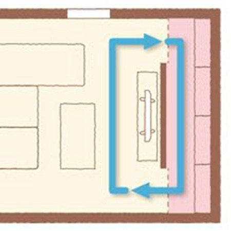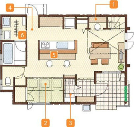 這個布置適合大玄關(guān)。對于較小的玄關(guān),有如下方式縮減流線距離,使布局更緊湊。