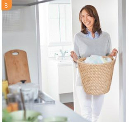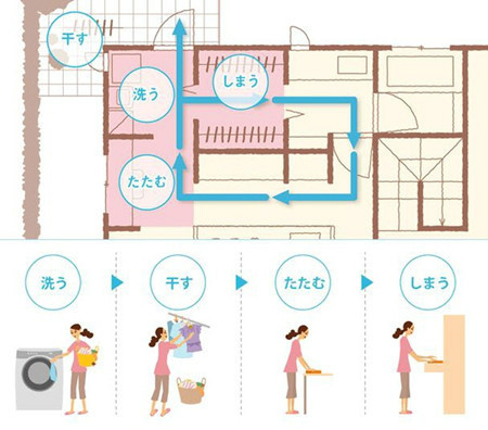 設(shè)計(jì)的時候就充分考慮從洗衣到晾曬空間到折疊到收納的流線,例如圖中的布局,洗衣房連著陽臺,洗完可以直接拿出去曬,收回來疊好直接放進(jìn)服裝的儲藏室。