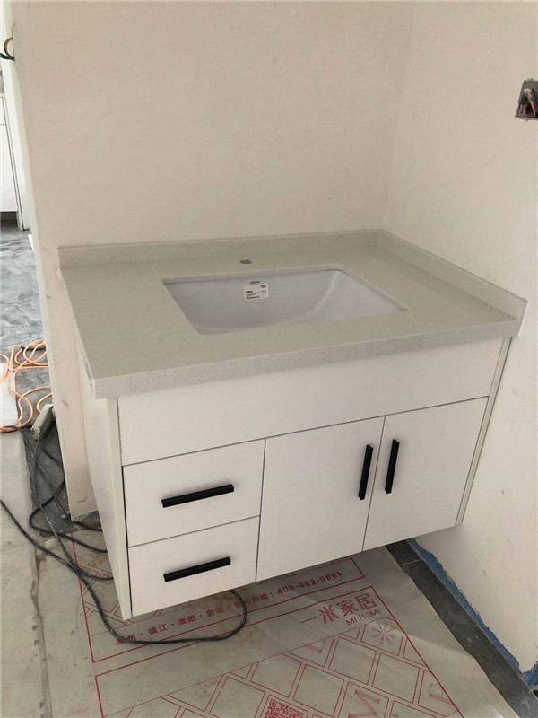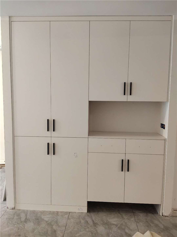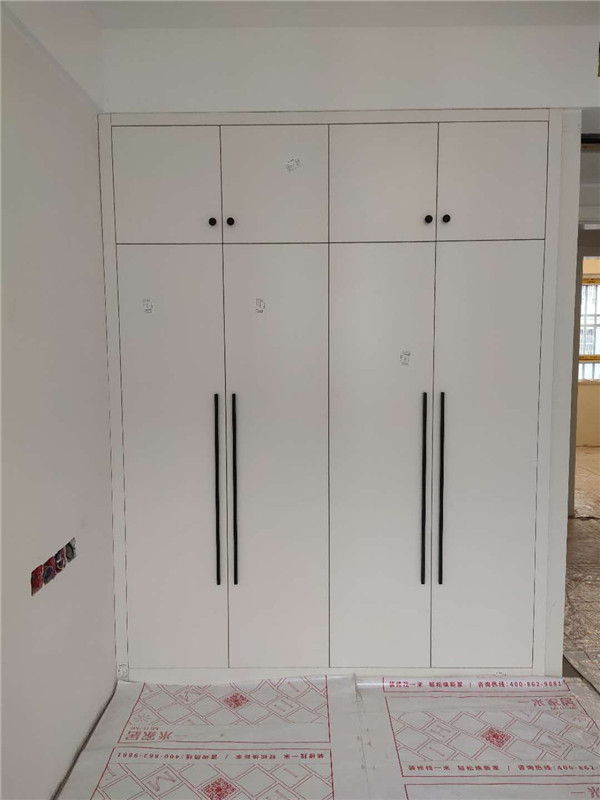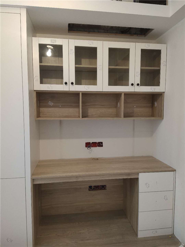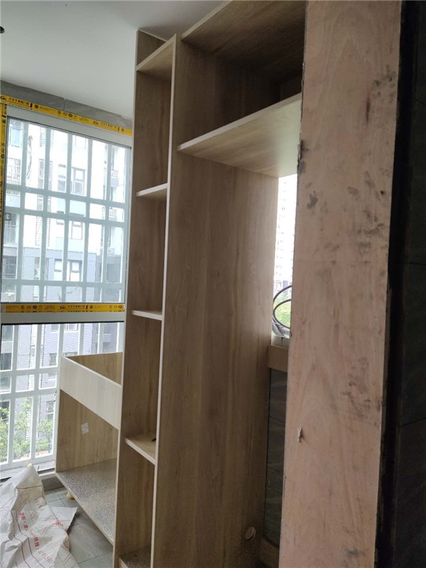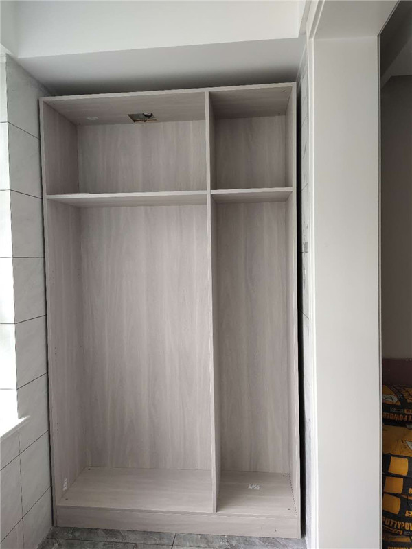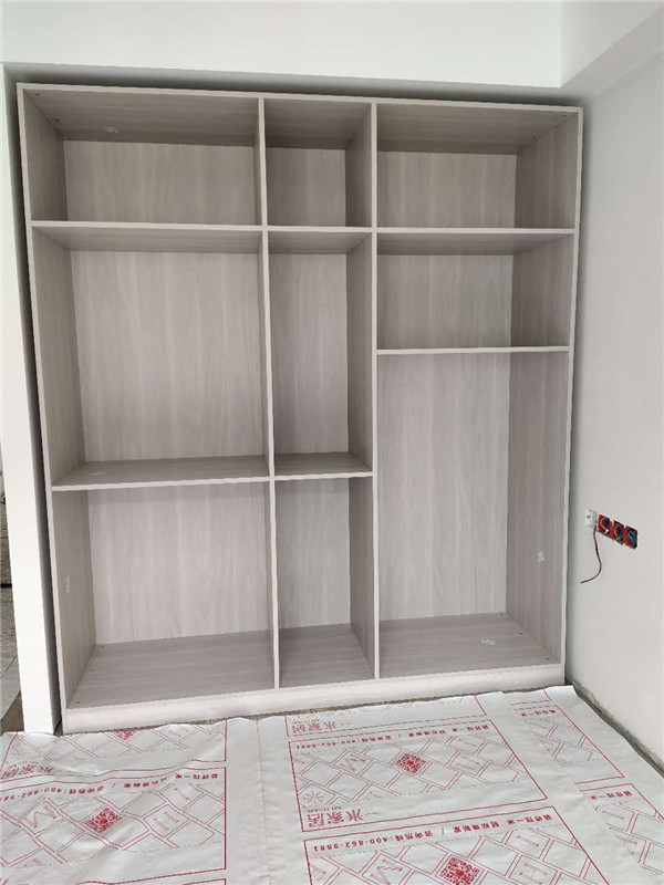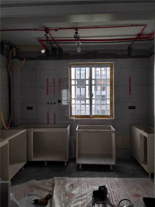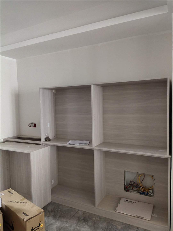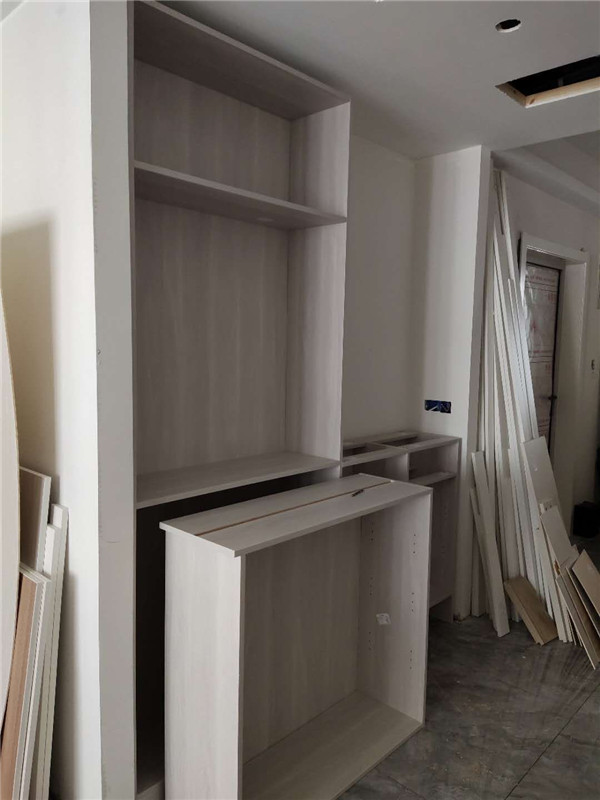 安裝兩天的效果,柜體基本拼裝完畢了,業(yè)主家柜體以淺色系為主,整體效果清爽干凈。