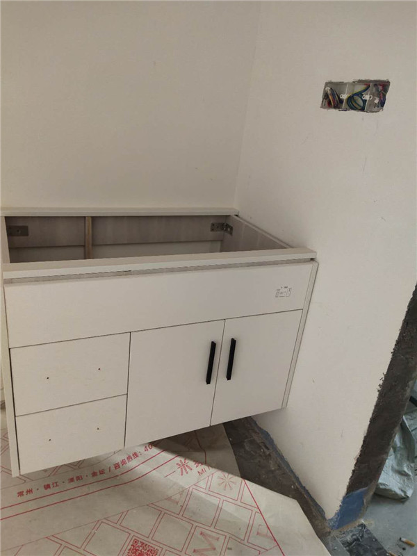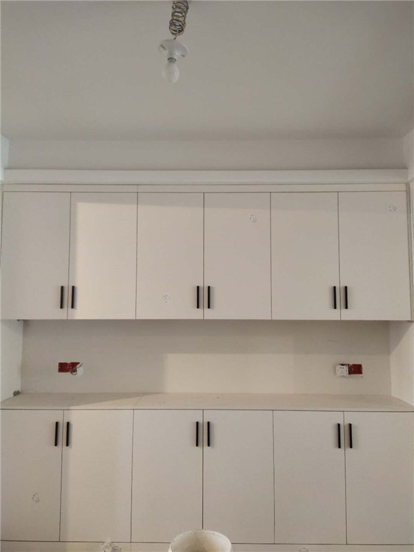 柜子都安裝好了,業(yè)主家以白色為主,配黑色拉手簡單,清爽。期待后期的整體效果。