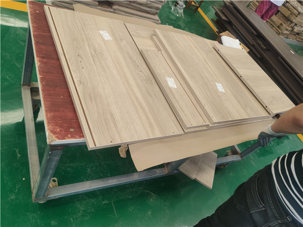 防止使用時(shí)間常出現(xiàn)柜體發(fā)霉的現(xiàn)象。拆好的板師傅都整整齊齊放在墊板上,沒有高矮不齊的現(xiàn)象,
