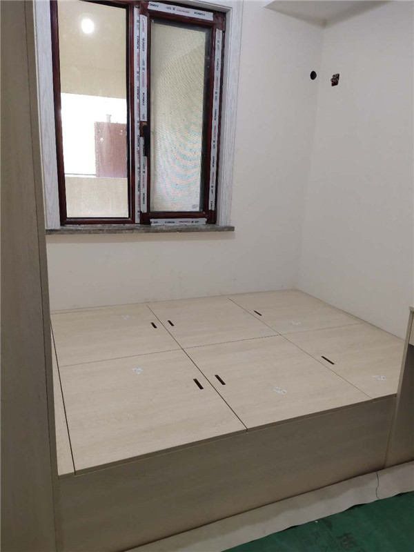 板下面都墊了墊板的哦,第一:防止地面有東西劃傷或者磕碰到板面,第二:防潮