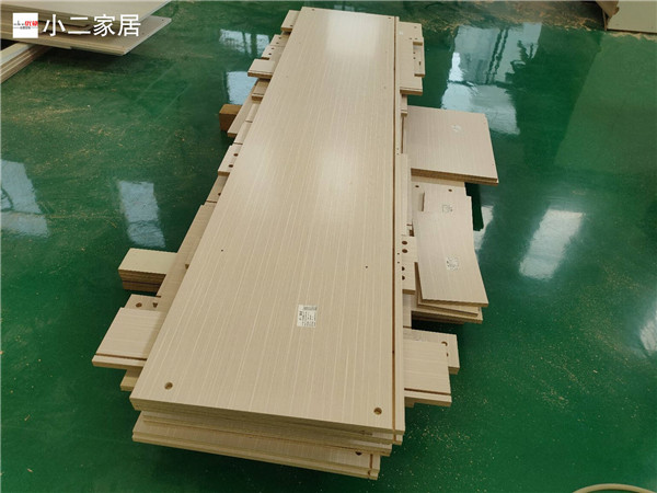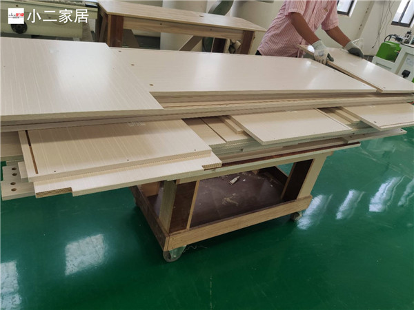 封邊完畢,打孔打包同時進行,我家柜子每塊板都是整個打包起來的,以防運輸過程中劃傷或者磕碰到,