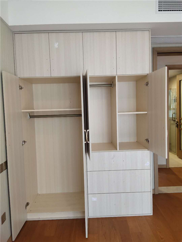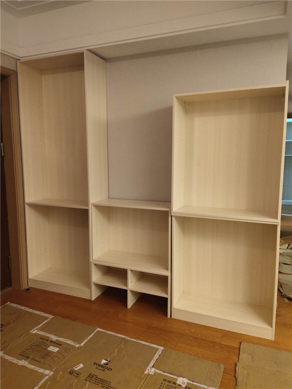 柜體差不多拼裝完畢,豎起來了,業(yè)主家柜體選擇的淺色系,整體效果清爽干凈,期待柜門安裝后的效果。