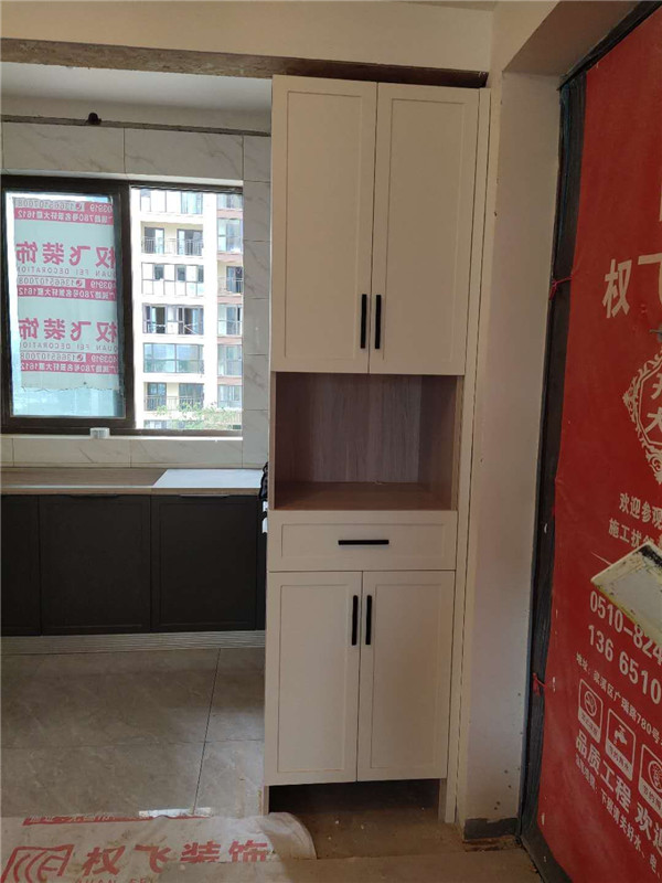 柜體基本拼裝完畢啦,業(yè)主家柜體選的同一種顏色,整體效果清爽干凈,顯得不那么雜亂。