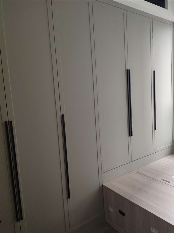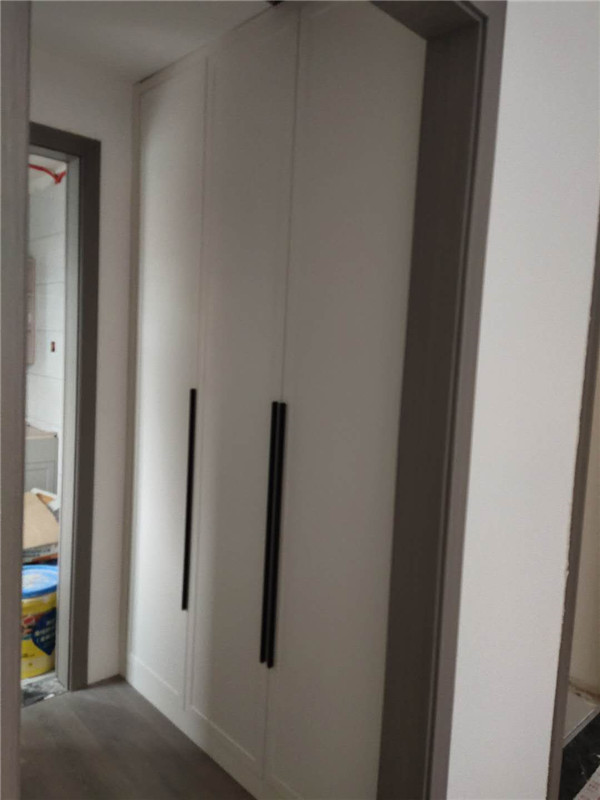 之前有點售后,現(xiàn)在都處理好了,業(yè)主家櫥柜鞋柜采用的模壓門,小房間采用的多層板大板移門,