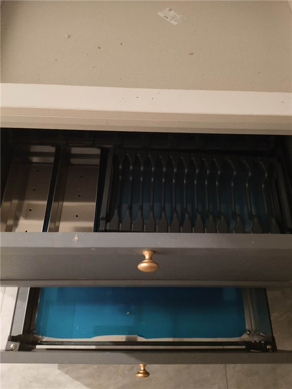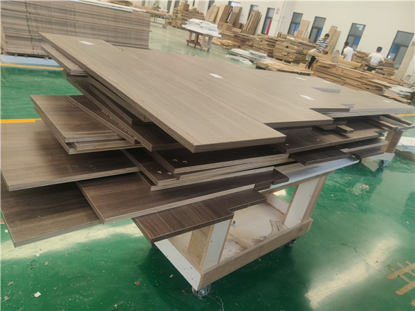 防止使用時(shí)間常出現(xiàn)柜體發(fā)霉的現(xiàn)象。拆好的板師傅都整整齊齊放在墊板上,沒有高矮不齊的現(xiàn)象,