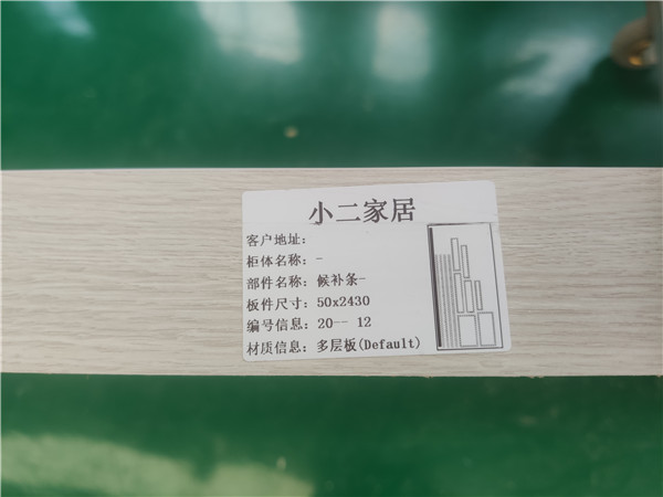 我家不管大小板都是四面封邊哦!每塊板上都貼有小標(biāo)簽,方便后期安裝師傅安裝。