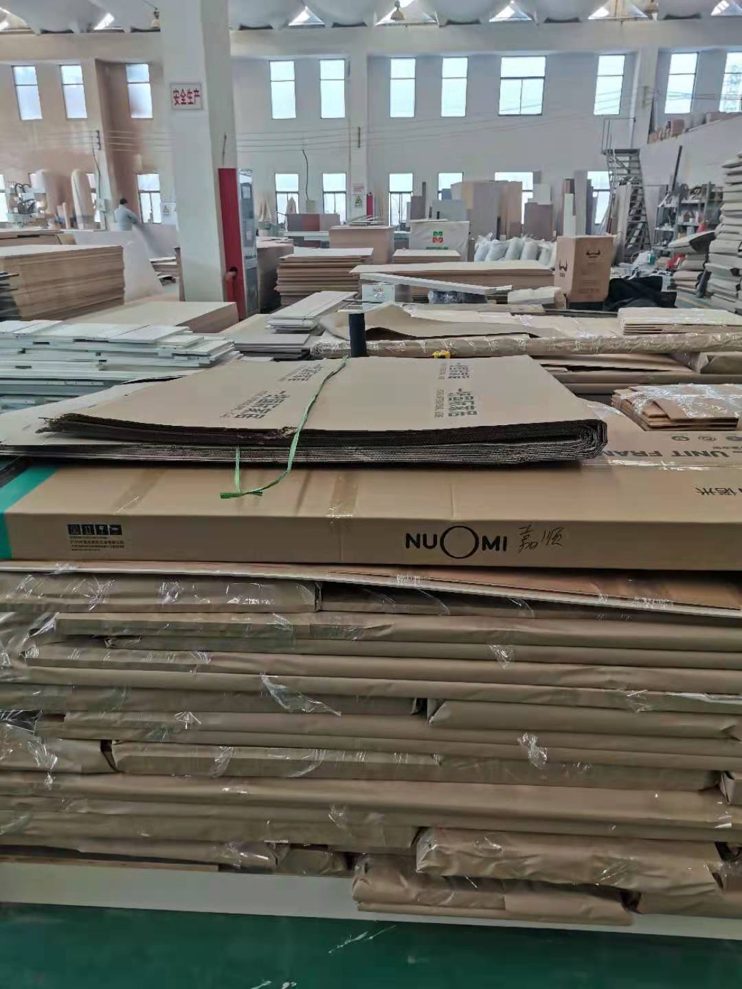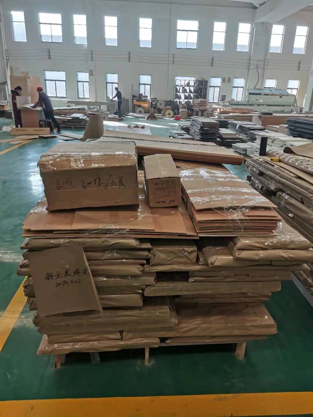 生產(chǎn)完成的板材堆放在一起,等待配送
