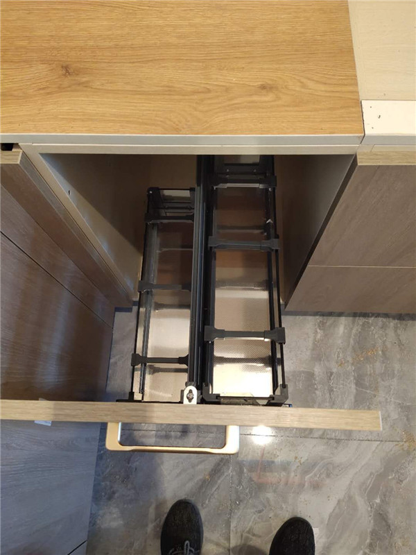廚房配的定制款拉籃三件套,采用的諾米鉸鏈,防塵角跟活動層板孔塞也都安排上了。