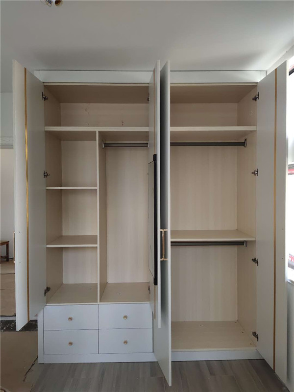 插槽背板離墻面1.7公分,防止使用時間常出現(xiàn)柜體發(fā)霉的現(xiàn)象。拆好的板師傅都整整齊齊放在墊板上,沒有高矮不齊的現(xiàn)象,