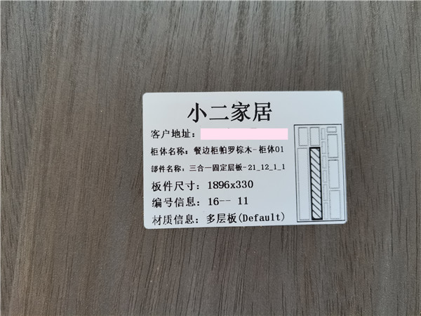 我家不管大小板都是四面封邊哦!每塊板上都貼有小標(biāo)簽,方便后期安裝師傅安裝。