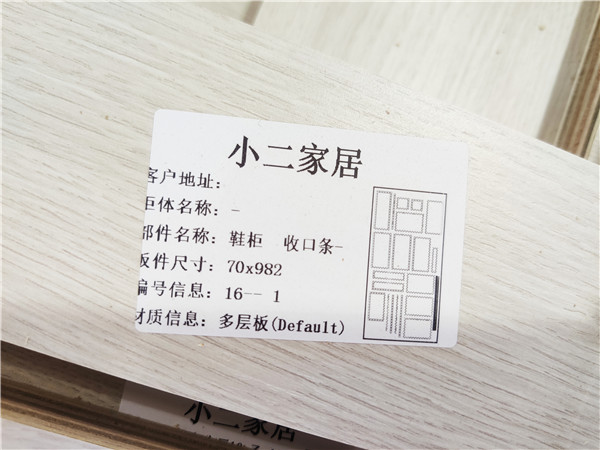 。我家不管大小板都是四面封邊哦!每塊板上都貼有小標簽,方便后期安裝師傅安裝。