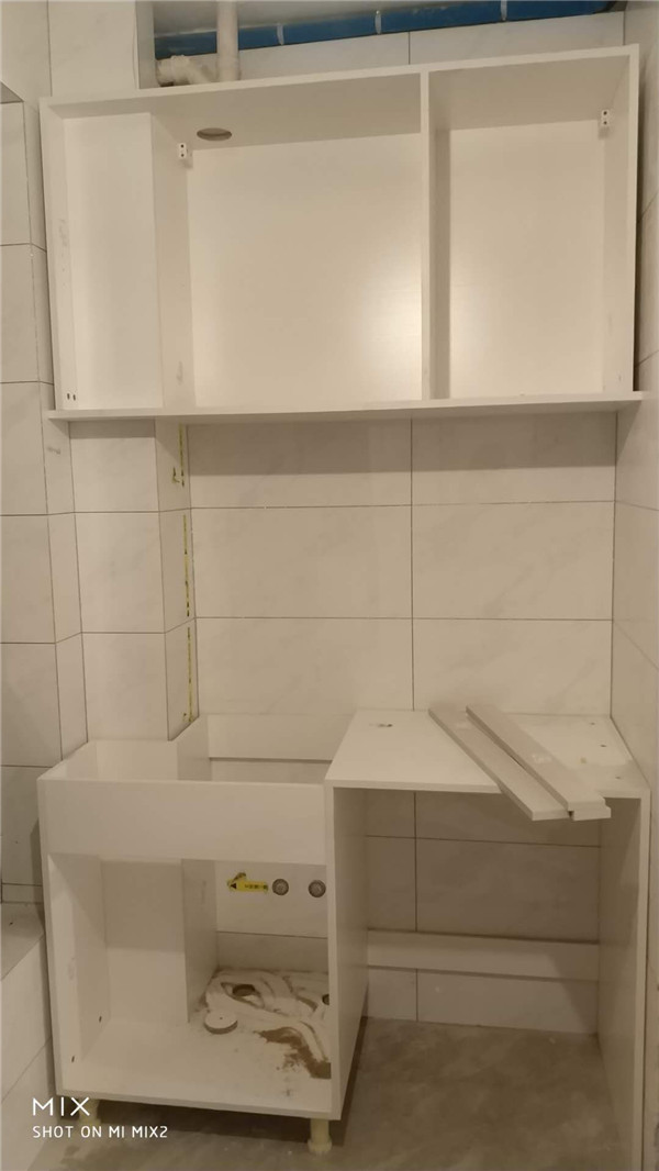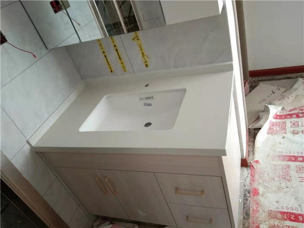 臺面安裝完畢,業(yè)主家選的白色臺面,采用的臺下盆,整體清爽干凈。