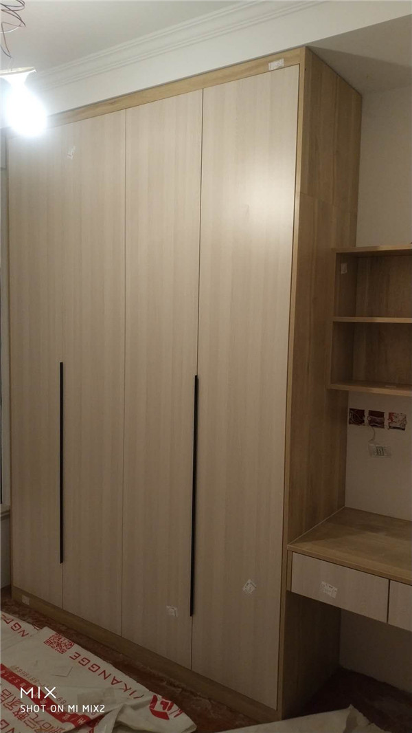 部分封邊完畢,已進入打包環(huán)節(jié)。柜門師傅會用柏油清洗劑全部擦拭一遍,以保證裝到客戶家整潔美觀。