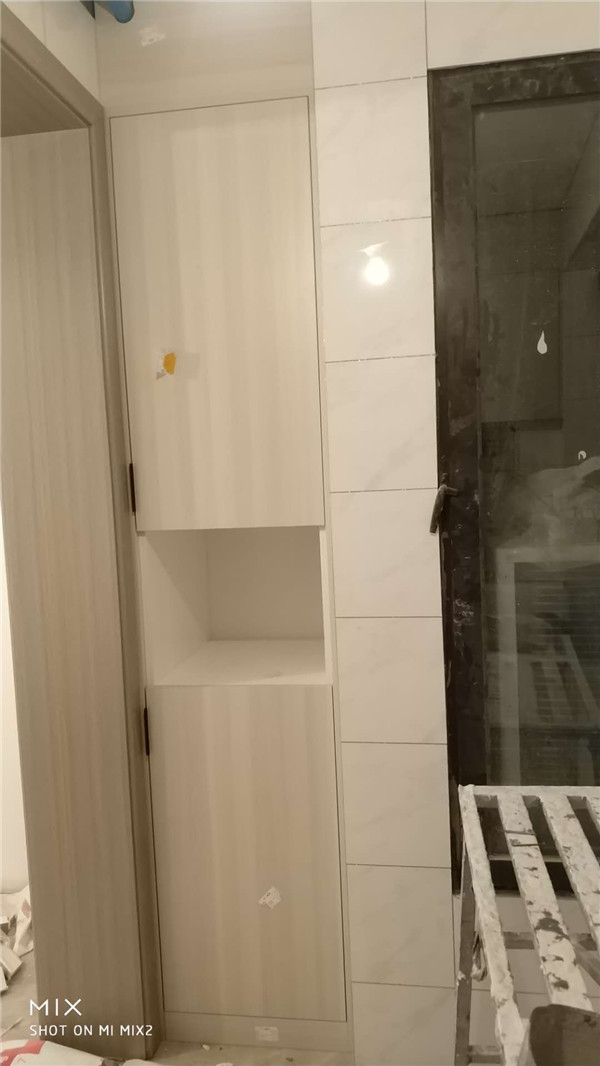 柜子已經(jīng)安裝完畢了,門板以淺色調(diào)為主,整體效果清爽干凈,后期軟裝也比較好搭配