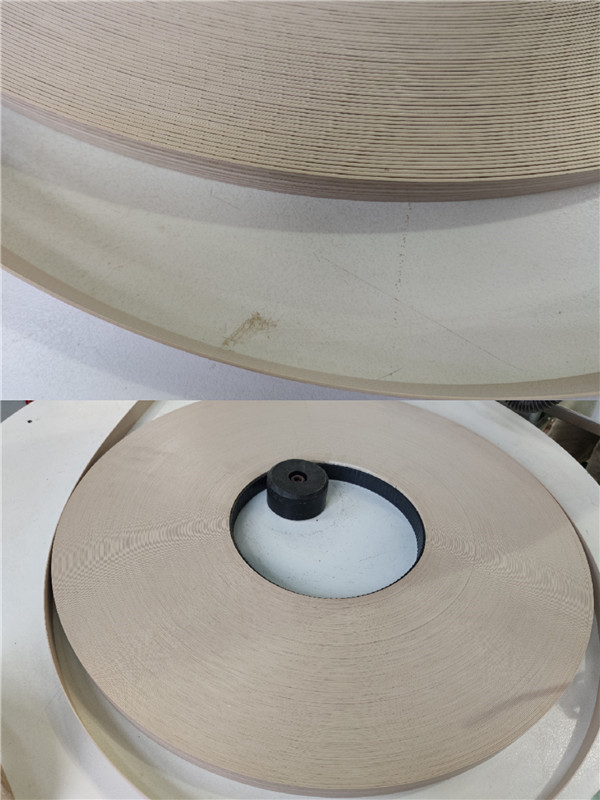 膠水采用美國波士熱熔顆粒膠,夏天溫度比較高,當(dāng)設(shè)備溫度達(dá)到160℃就好開始封邊了。我家不管大小板都是四面封邊哦!