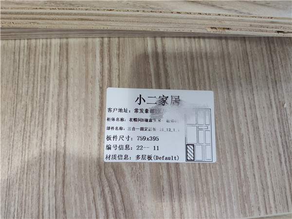 每塊板上都貼有小標(biāo)簽,方便后期安裝師傅安裝,封邊條上都帶有“優(yōu)端”logo的哦!方便后期售后服務(wù)。