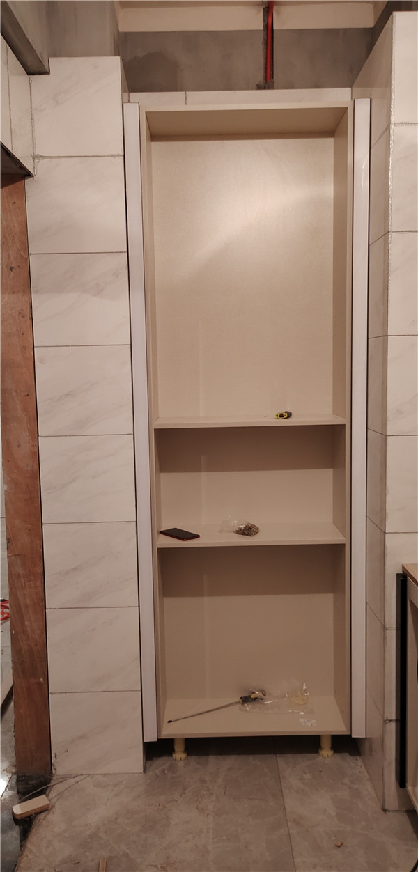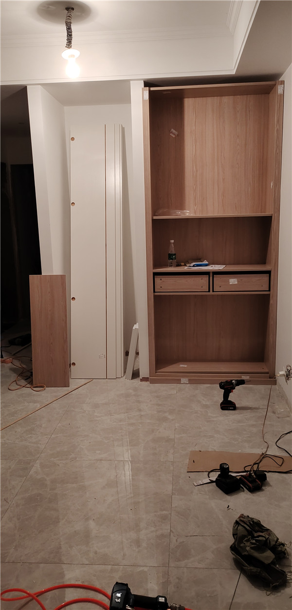 柜體基本拼裝完畢了,原木色搭配白色自然清爽,簡約大方。