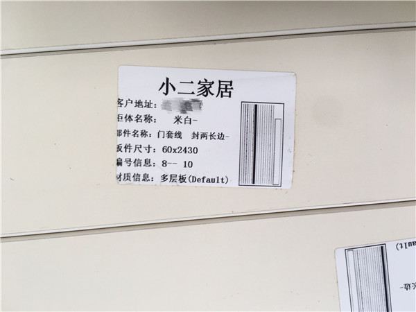 我家不管大小板都是四面封邊哦!每塊板上都貼有小標(biāo)簽,方便后期安裝師傅安裝。