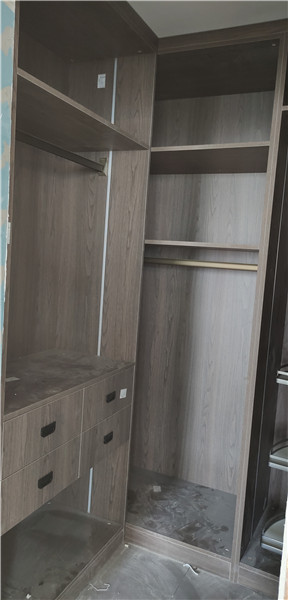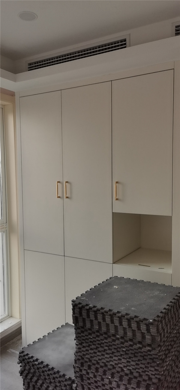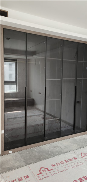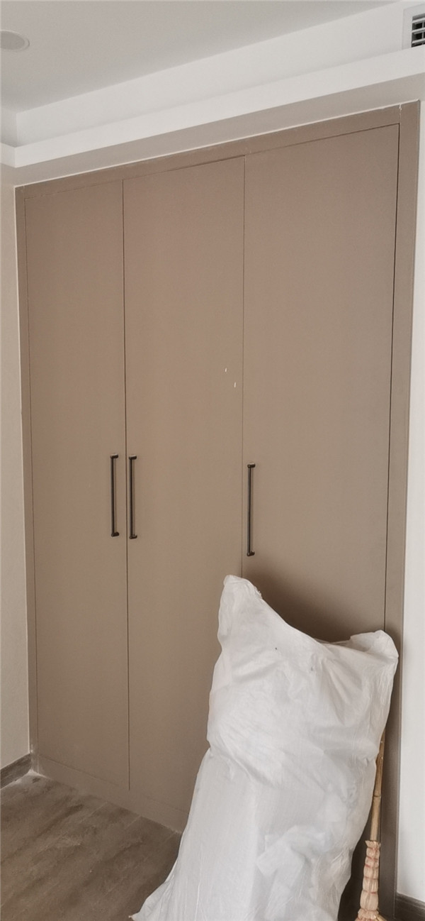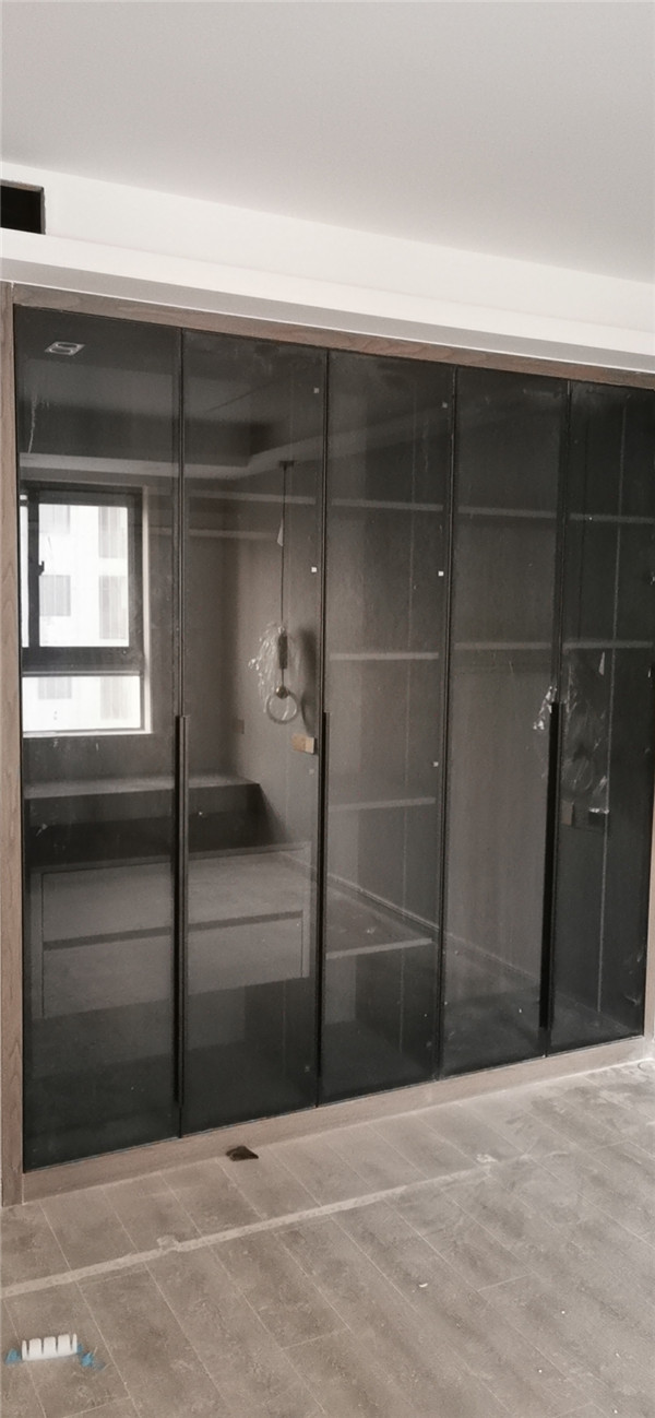 業(yè)主家柜子還是蠻多的,黑色邊框灰玻門搭配上膚感板,