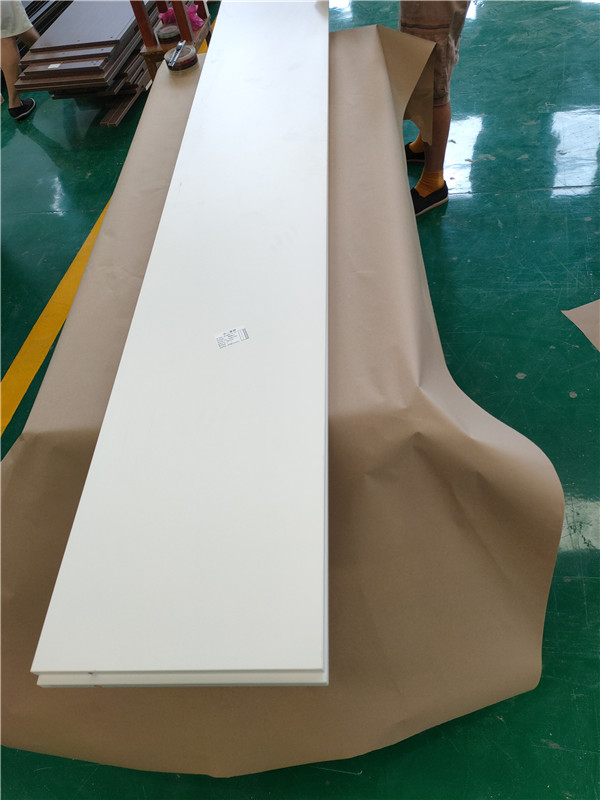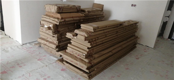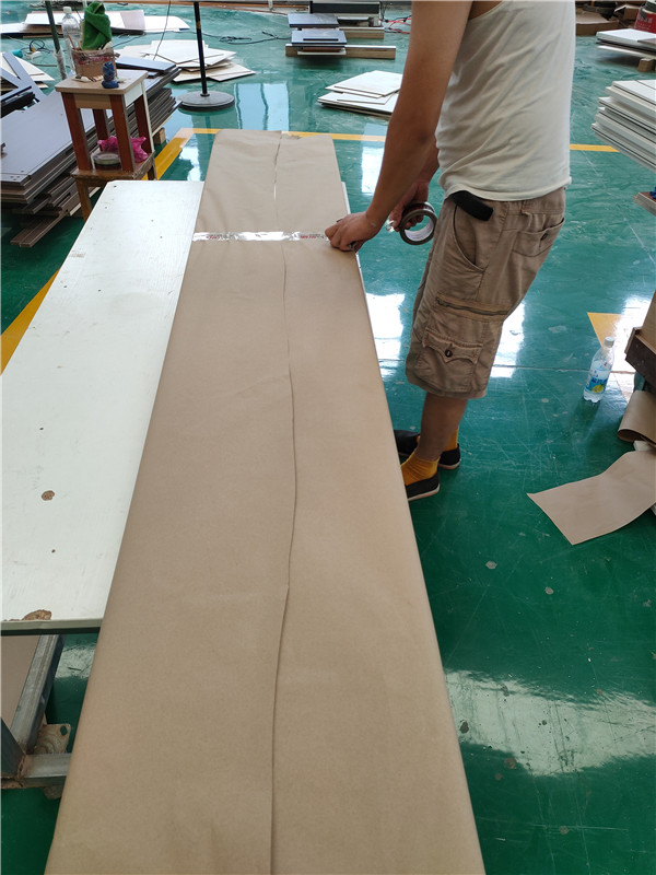 封邊完畢,已進(jìn)入打包環(huán)節(jié)。師傅會(huì)用柏油清洗劑把板全部擦拭一遍,以保證裝到客戶家整潔美觀。