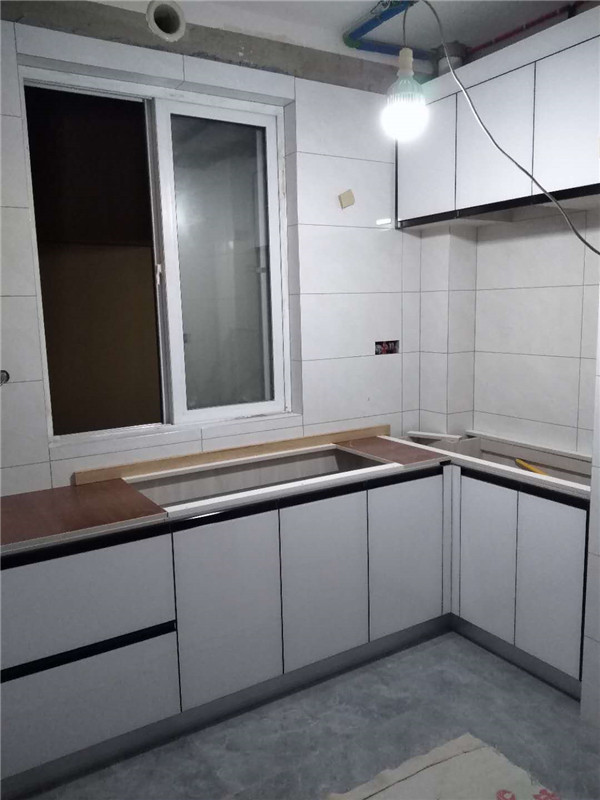 臺(tái)面安裝好了,配上白色門板,看上去干凈又清爽。