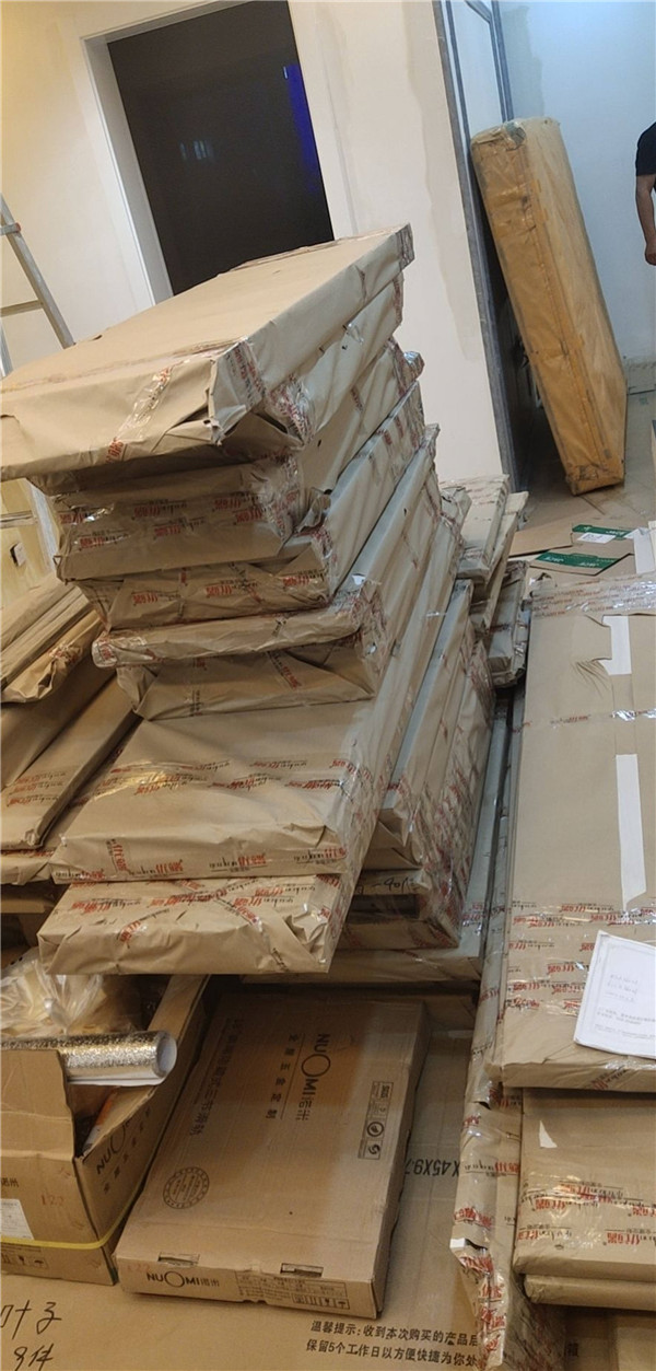 已進(jìn)入打包環(huán)節(jié)。柜門師傅會(huì)用柏油清洗劑全部擦拭一遍,以保證裝到客戶家整潔美觀。我家柜子每塊板都是整個(gè)打包起來的,