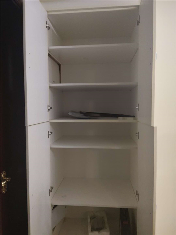 柜子安裝完畢了,因?yàn)榭蛻艏沂蔷b修,頂上有陰角線所以柜子沒有做到頂,最終效果還是可以的