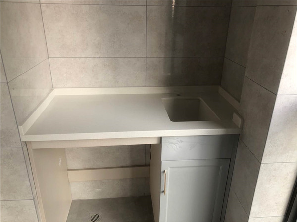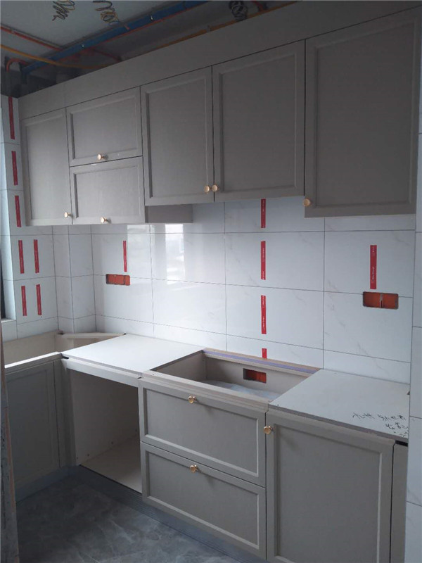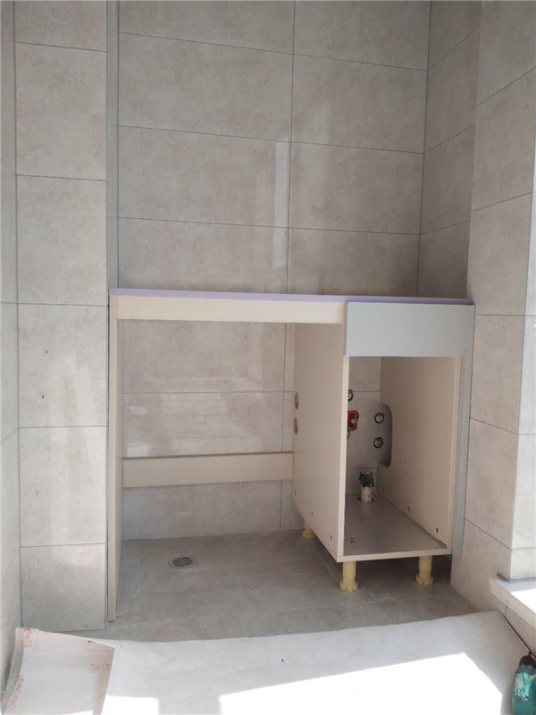 房水槽、灶具、浴柜臺(tái)盆放置在現(xiàn)場(chǎng),后期臺(tái)面安裝需用到。柜子安裝好后進(jìn)入臺(tái)面測(cè)量環(huán)節(jié),臺(tái)面