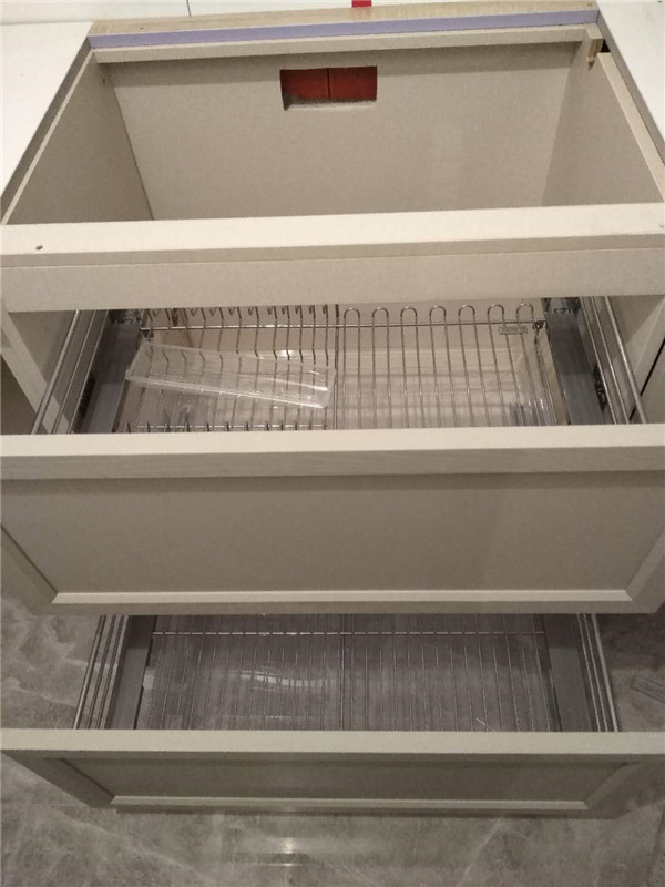 柜子安裝好啦!五金:海蒂詩導(dǎo)軌,諾米鉸鏈,諾米氣撐,諾米拉籃,索菲亞掛衣架等。水槽都鋪有防水錫紙,