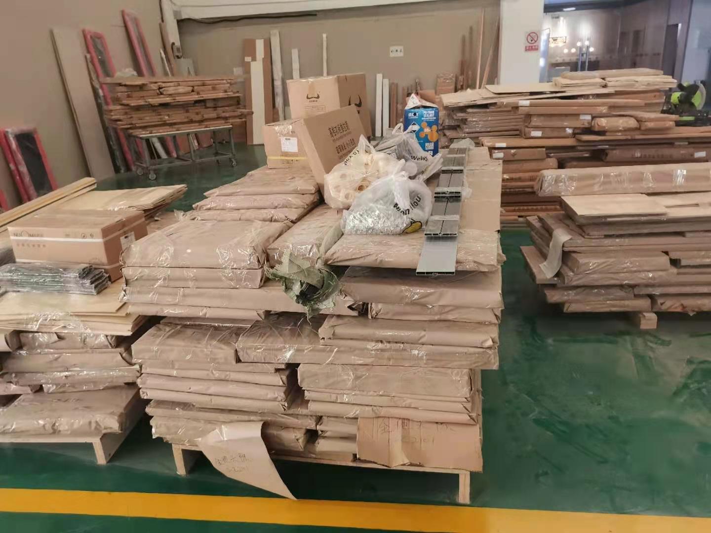 已經(jīng)生產(chǎn)完的板材堆放在一起