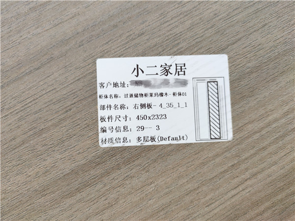 我家不管大小板都是四面封邊哦!每塊板上都貼有小標(biāo)簽,方便后期安裝師傅安裝。