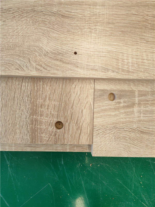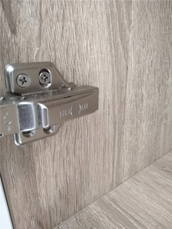 防止潮濕,鉸鏈我們配的是國產(chǎn)一線品牌諾米的,我們會在側(cè)板上多打兩個孔放活動層板并加入孔塞。