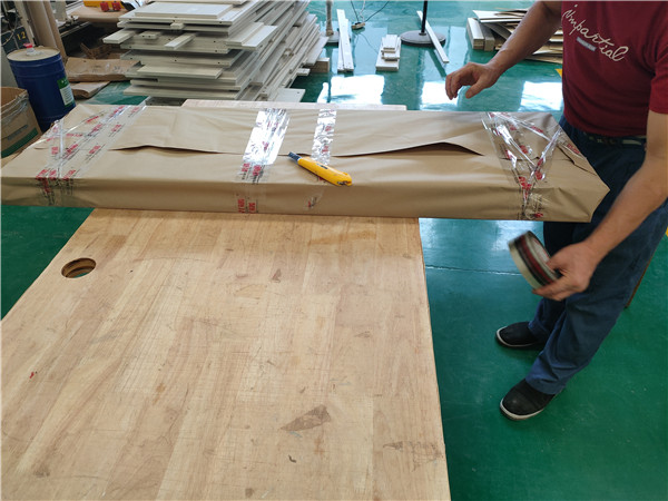 已進入打包環(huán)節(jié),柜門師傅會用柏油清洗劑全部擦拭一遍,以保證裝到客戶家整潔美觀。
