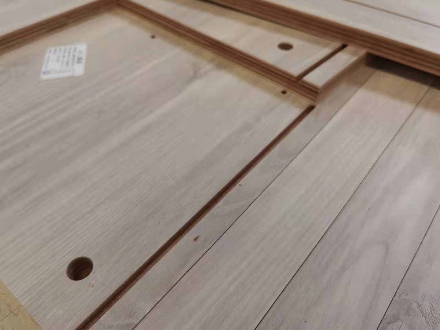 開(kāi)始封邊啦,封邊采用的是1.0厚的pvc封邊條,方便前口倒圓弧,整體效果即美觀又不容易磕碰到。膠水采用美國(guó)波士熱熔顆粒膠,當(dāng)設(shè)備溫度達(dá)到180℃以上就好開(kāi)始封邊了。我家不管大小板都是四面封邊哦!每塊板上都貼有小標(biāo)簽,方便后期安裝師傅安裝。