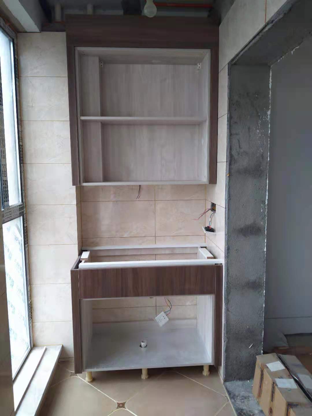 柜體正在安裝中,期待成品效果~