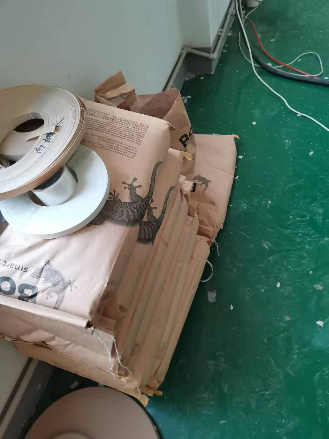開始封邊啦,用的是1.0厚度的封邊條,膠水采用的是波士熱熔顆粒膠。板上都有小標簽哦