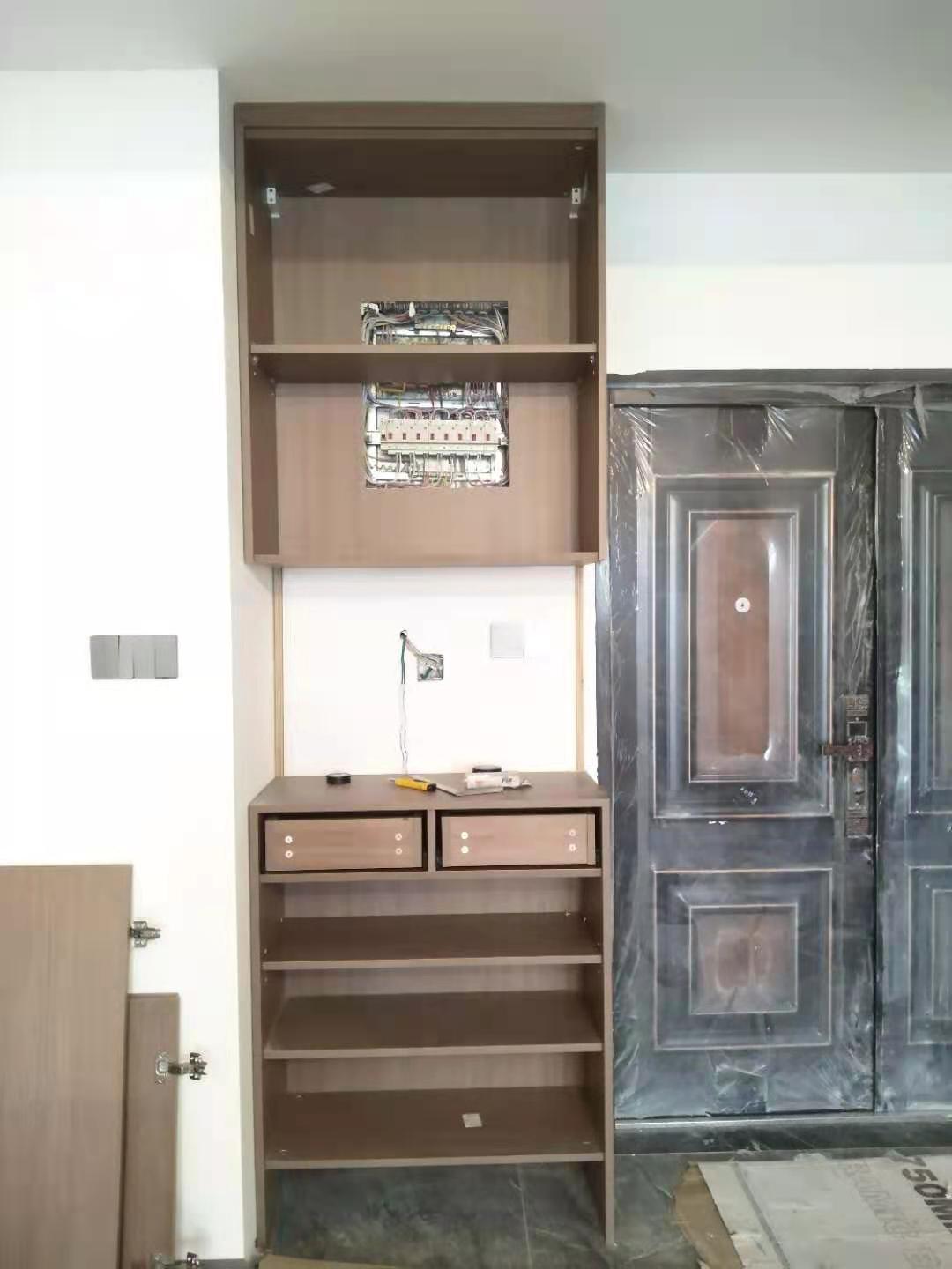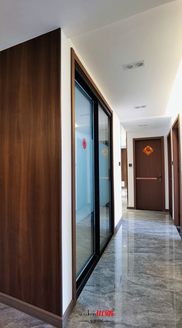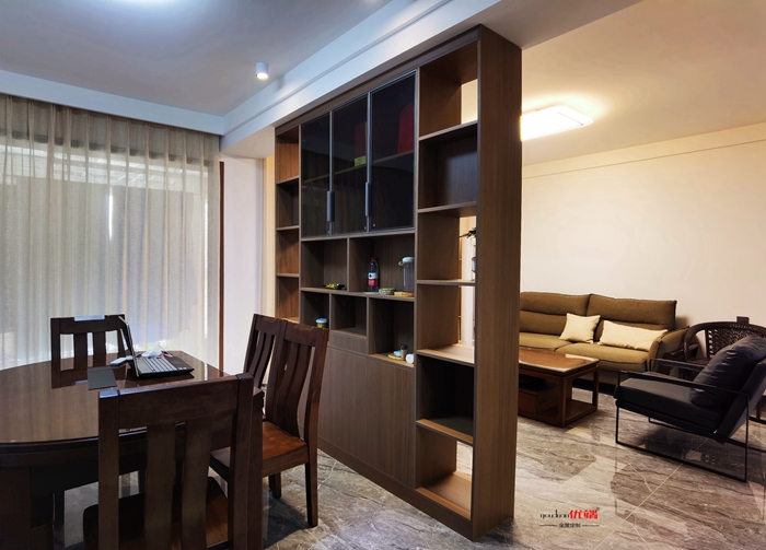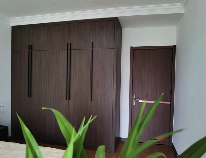 完工啦,來看看現(xiàn)場效果吧。客餐廳設(shè)計(jì)的隔斷即是電視背景又可收納,兼具美觀和使用。顏色森德時(shí)光,沉穩(wěn)中帶著時(shí)尚。護(hù)墻板和整體色調(diào)無不彰顯主人沉穩(wěn)內(nèi)斂的氣質(zhì)。臥室櫥柜采用平安樹實(shí)木多層板愛爾蘭胡桃色,又增添了古韻。