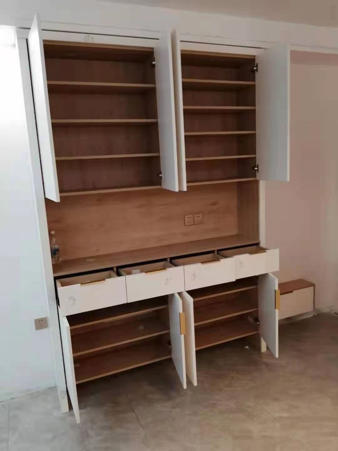 插槽背板離墻面1.7公分,防止使用時間常出現(xiàn)柜體發(fā)霉的現(xiàn)象。拆好的板師傅都整整齊齊放在墊板上,沒有高矮不齊的現(xiàn)象。