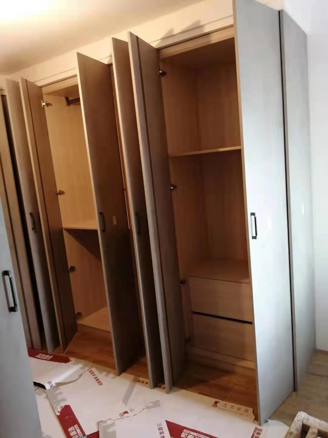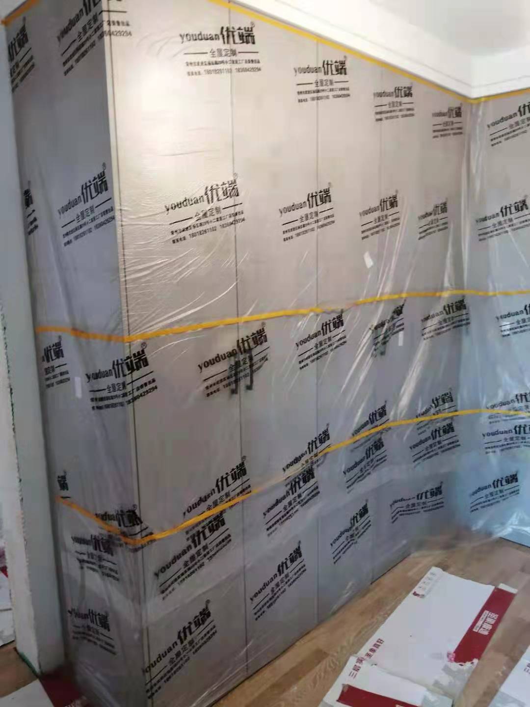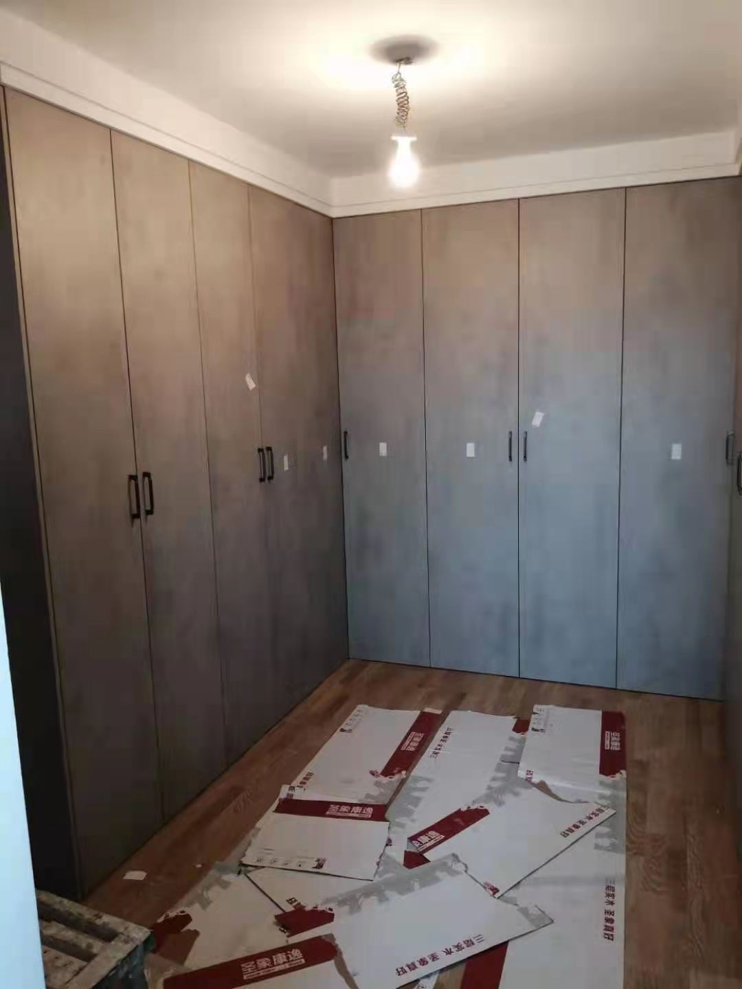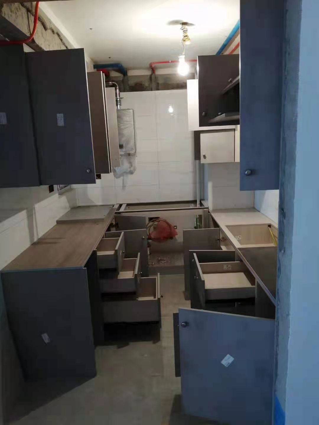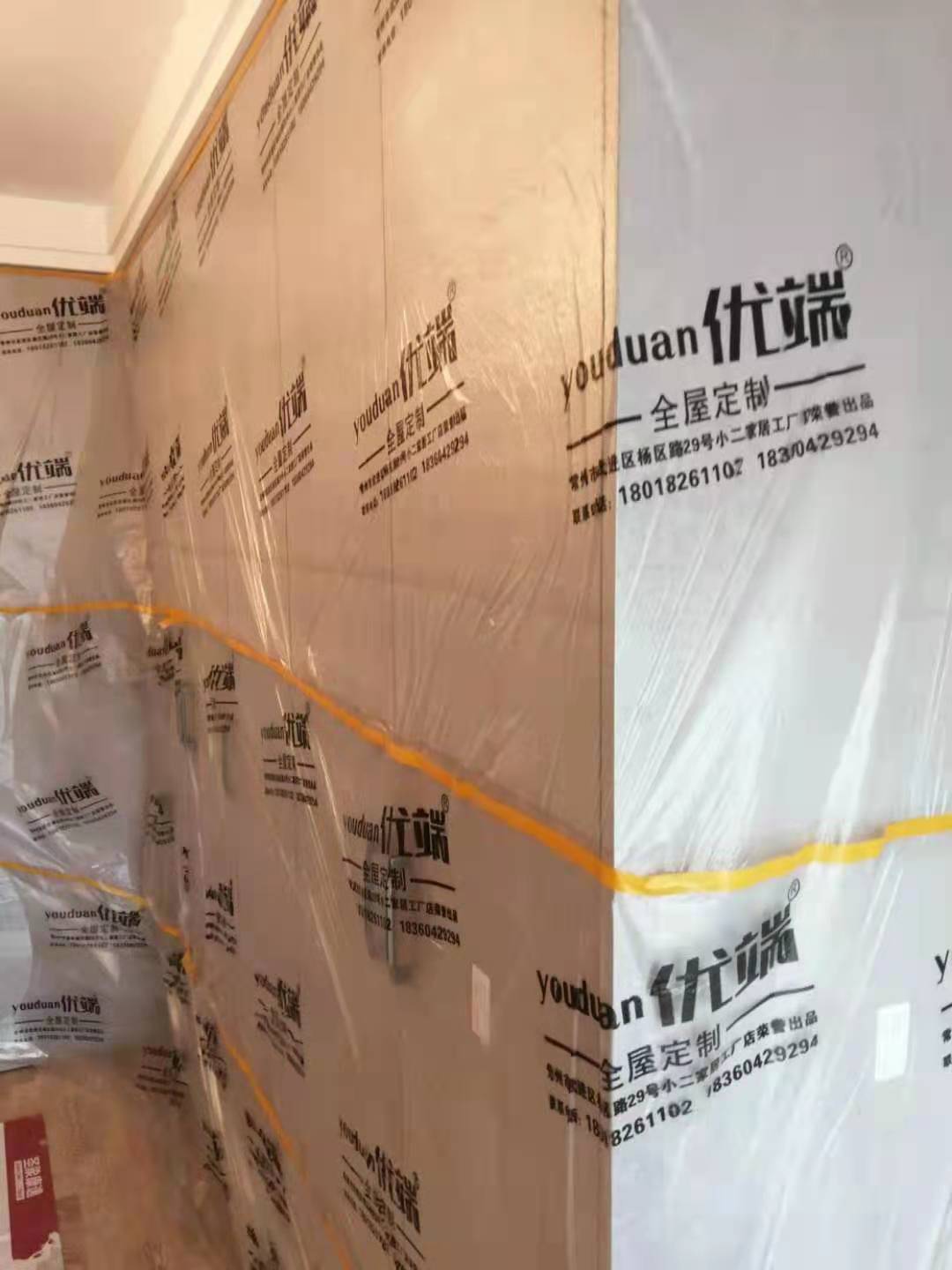 安裝完成的柜子都用塑料膜保護(hù)起來(lái)了
