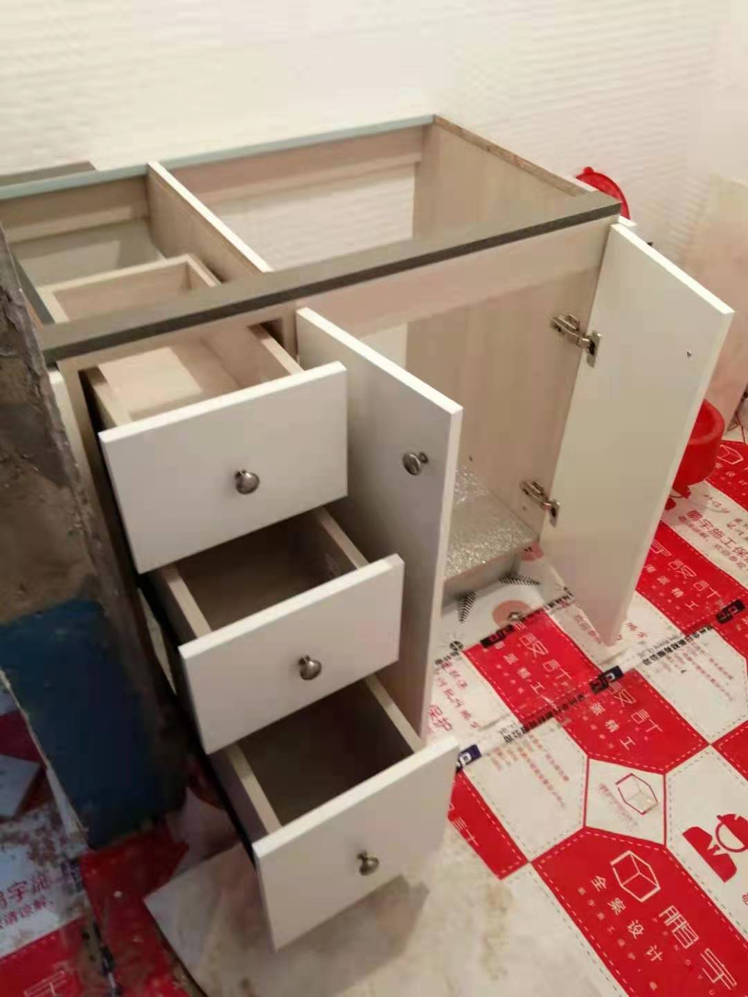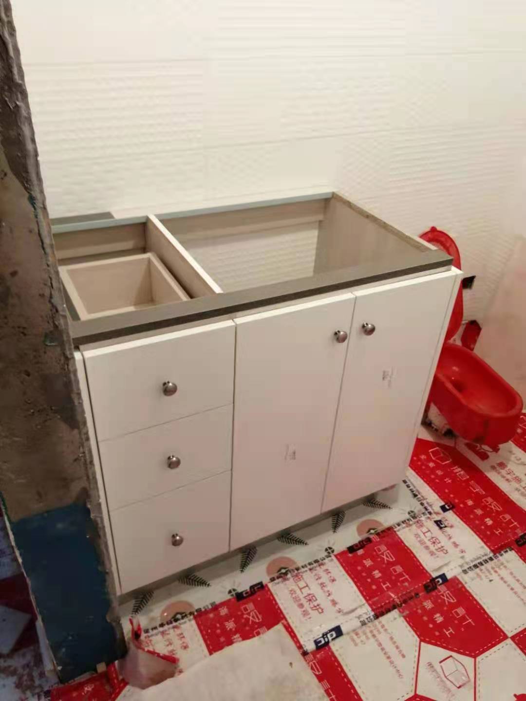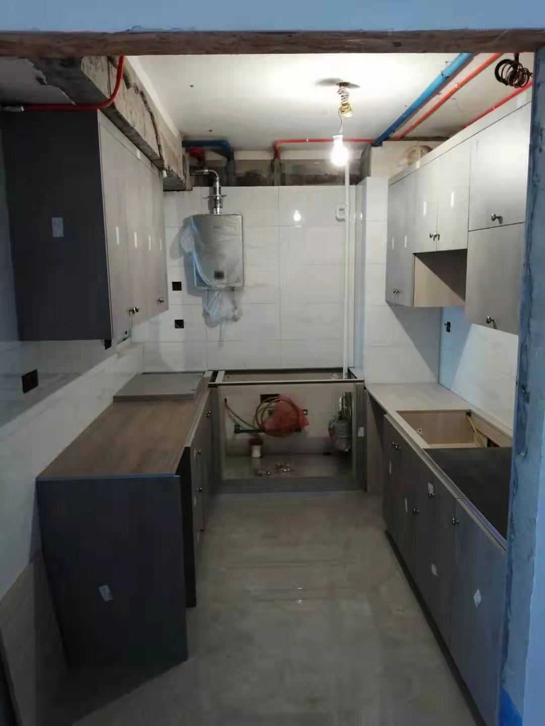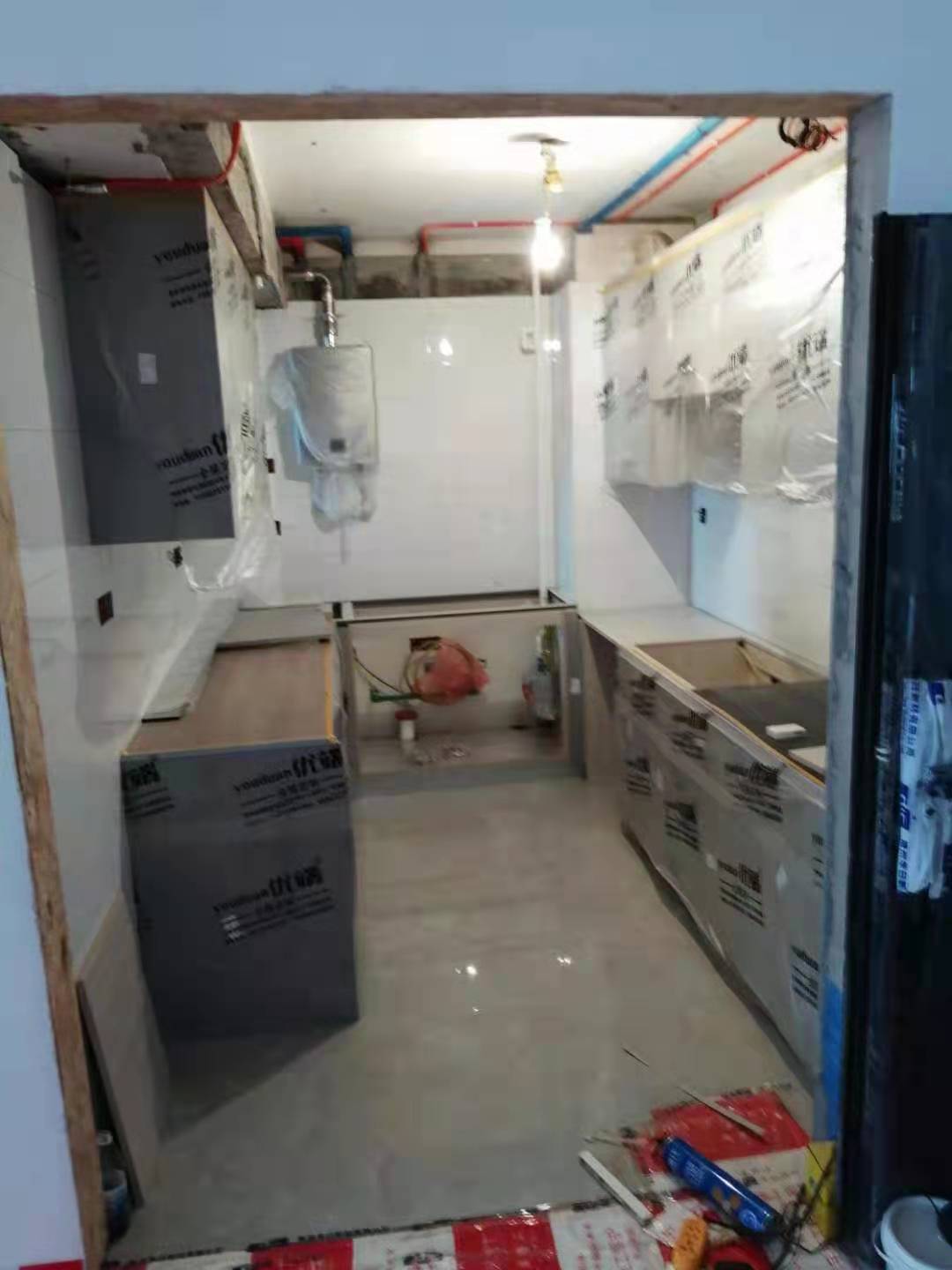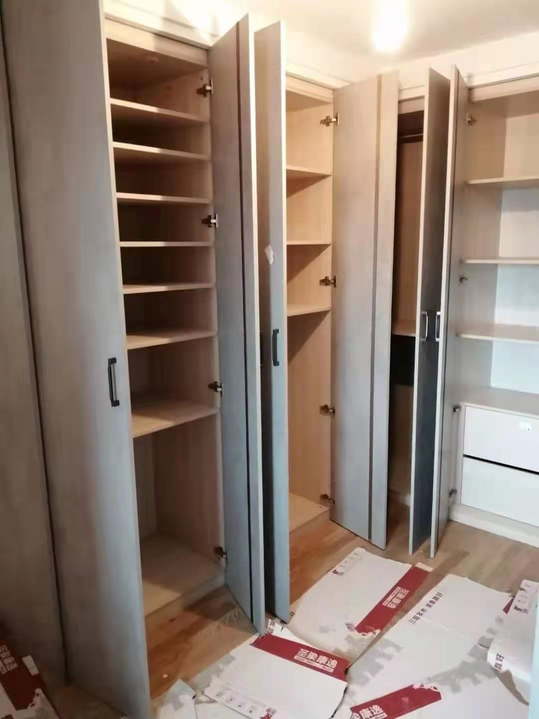 安裝完成的柜子都用塑料膜保護(hù)起來(lái)了