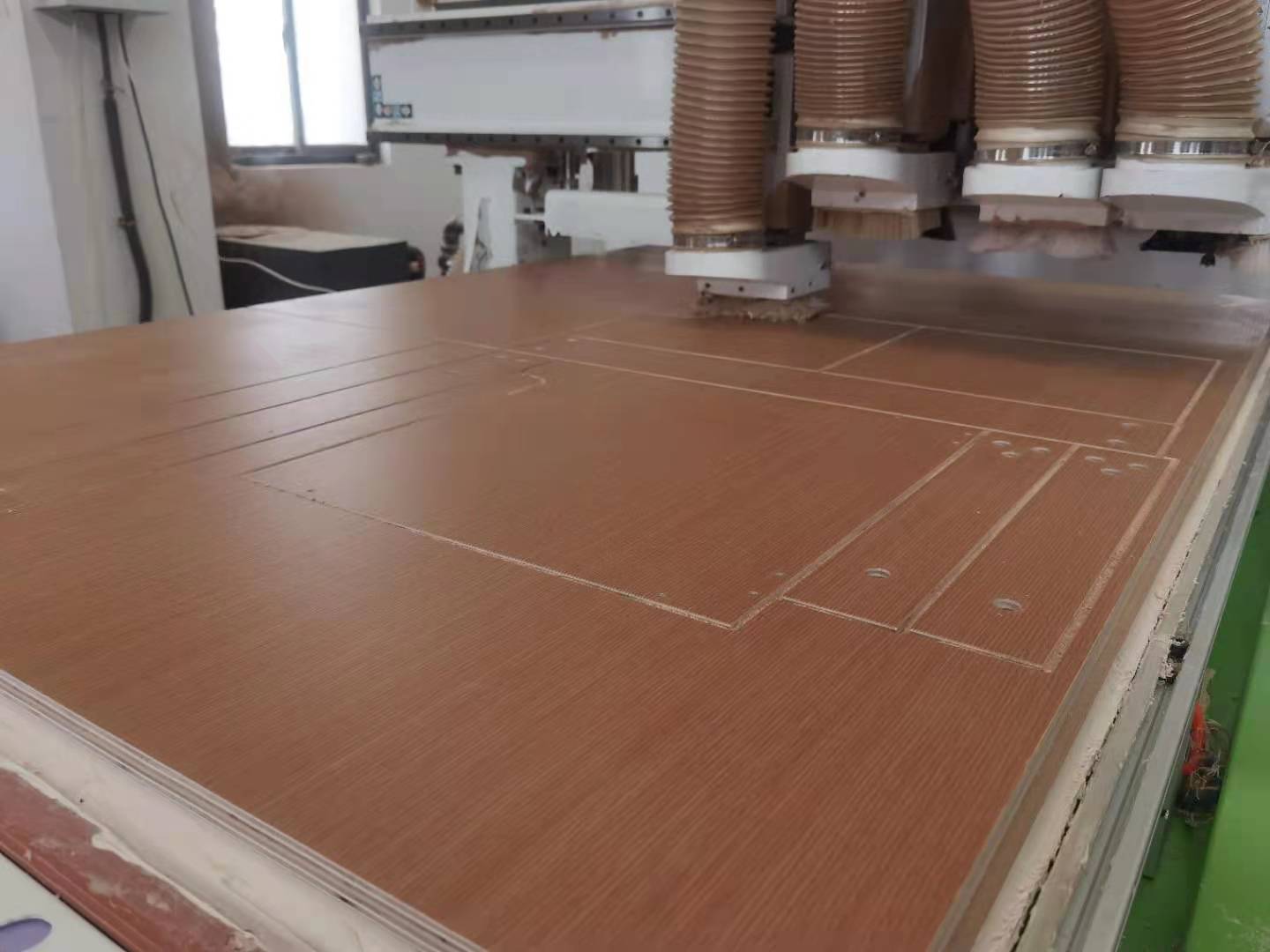 門板抽面倒角中。