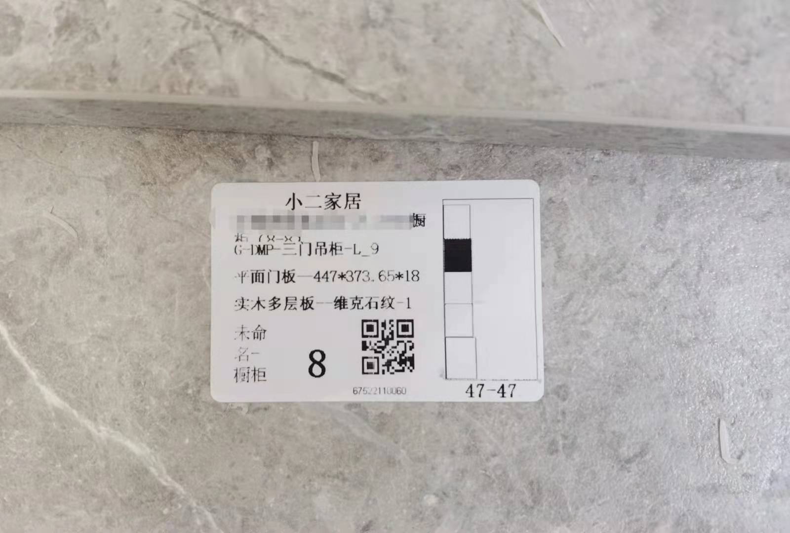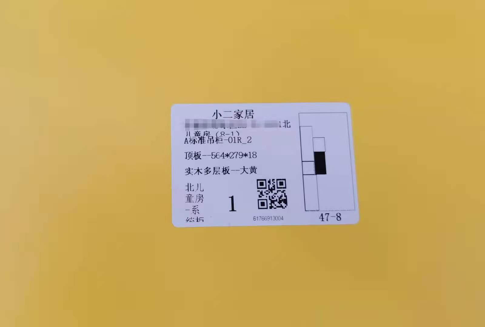 封邊采用的是1.0厚的pvc封邊條,方便前口倒圓弧,整體效果即美觀又不容易磕碰到。膠水采用美國波士熱熔顆粒膠,當(dāng)設(shè)備溫度達到180℃以上就好開始封邊了。我家不管大小板都是四面封邊哦!每塊板上都貼有小標(biāo)簽,方便后期安裝師傅安裝。