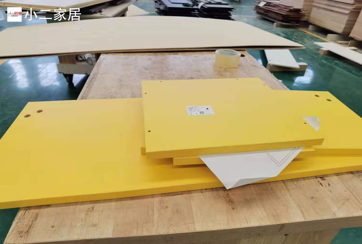 開始制作啦!專業(yè)設(shè)備裁板,邊口都是直的,沒有爆邊的情況,這樣后面封出來的邊更圓滑,全自動機器開料尺寸更精準(zhǔn)。插槽背板離墻面1.7公分,防止使用時間常出現(xiàn)柜體發(fā)霉的現(xiàn)象。拆好的板師傅都整整齊齊放在墊板上,沒有高矮不齊的現(xiàn)象,板下面都墊了墊板的哦,第一:防止地面有東西劃傷或者磕碰到板面,第二:防潮