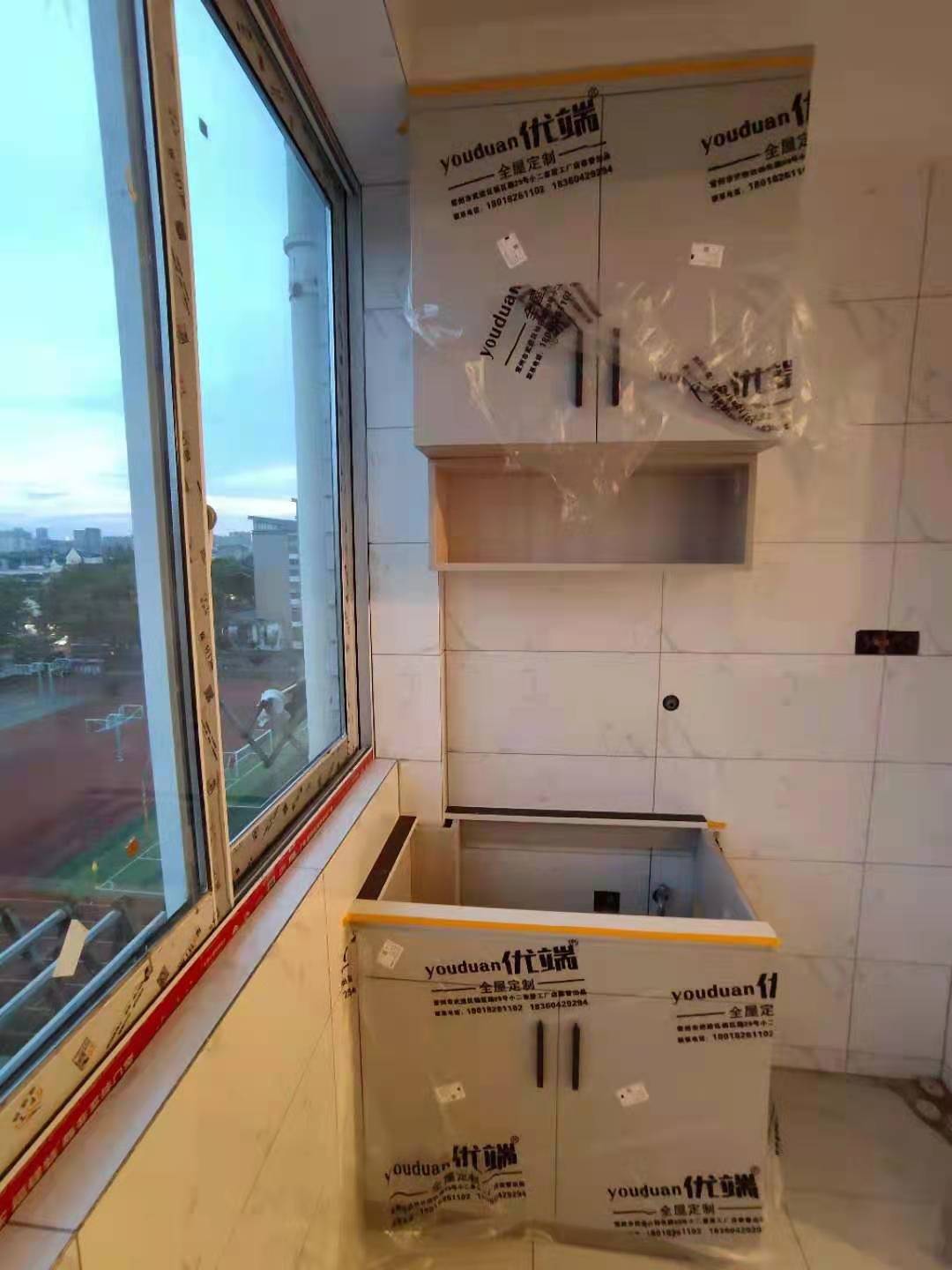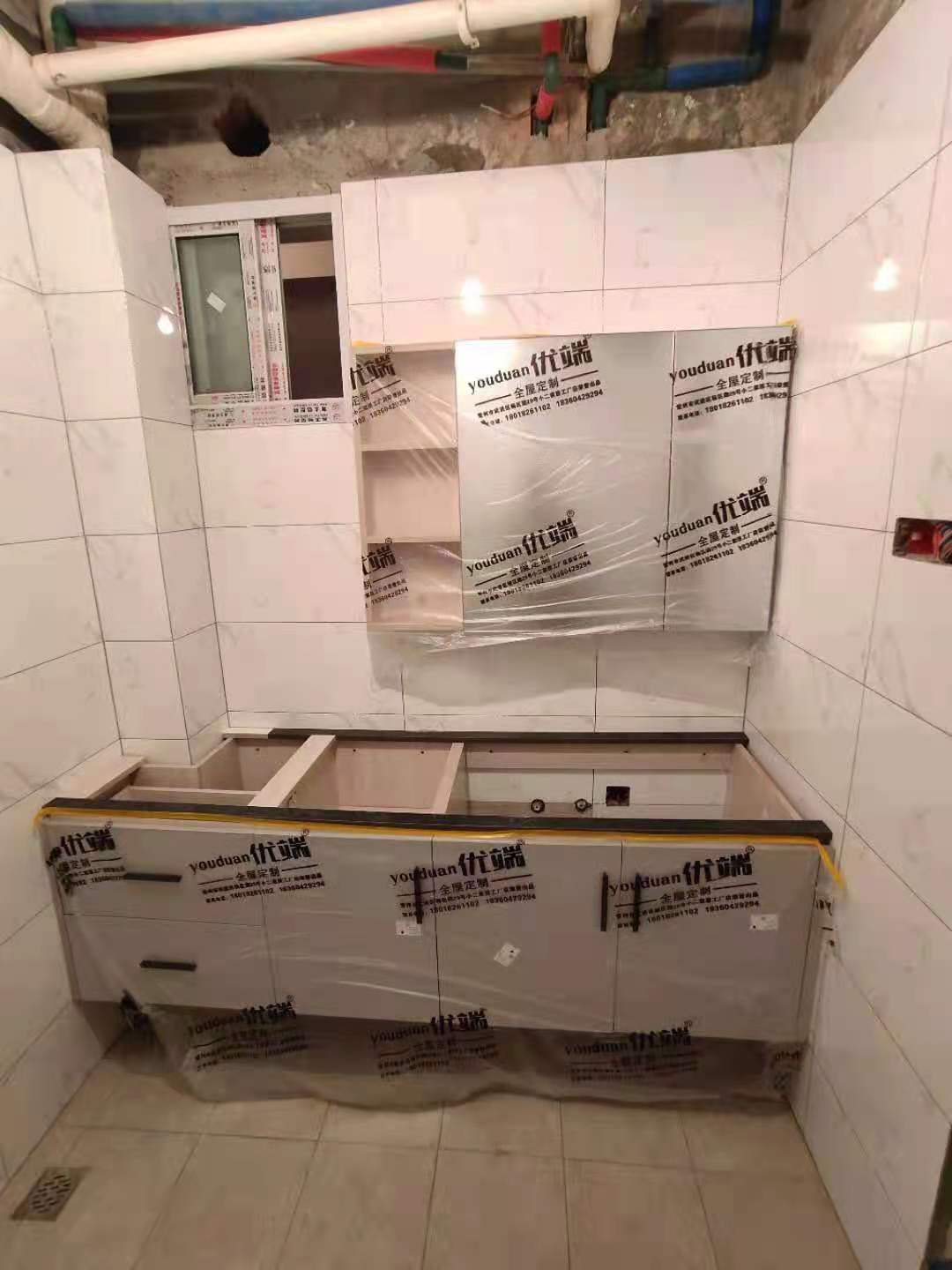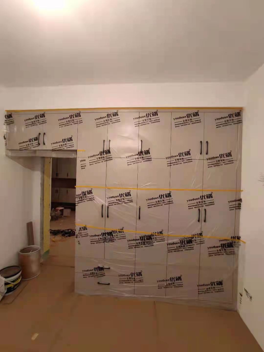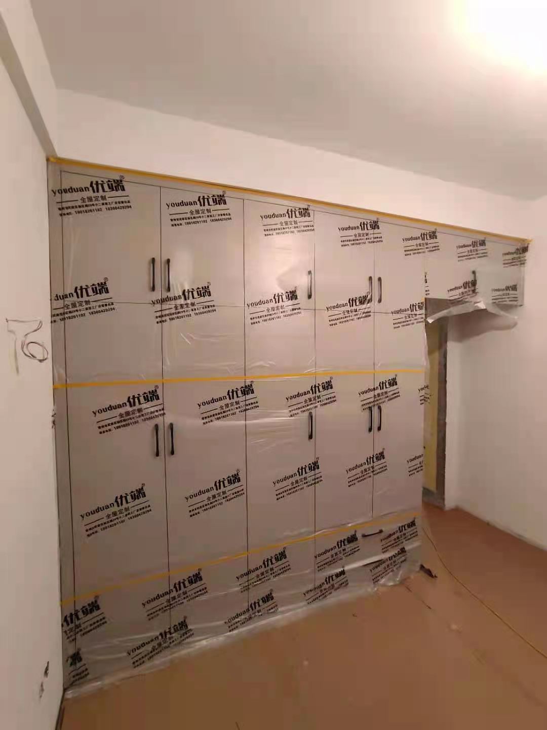 安裝完成的柜子都用塑料膜保護(hù)起來了